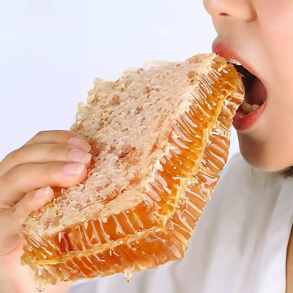 Comb honey is raw honey preserved in its natural wax cells, just as bees make it. Eating comb honey provides powerful antioxidants, boosts immunity, improves digestion, soothes sore throat and cough, supports heart health, and gives instant natural energy. The edible beeswax helps cleanse the mouth and gut, making it a perfect, unprocessed superfood that delivers both taste and wellness in its most natural form.