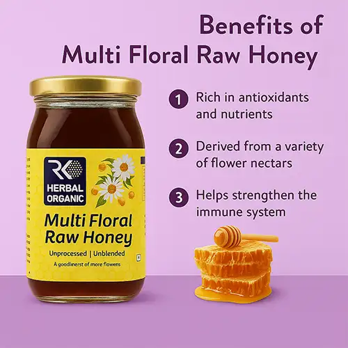Multi-flower honey, derived from the nectar of various flowers, is rich in antioxidants, vitamins, and minerals, offering numerous health benefits. It boosts immunity, supports digestion, provides a quick energy source, and soothes sore throats and coughs. Its antimicrobial properties make it beneficial for skin health, while its potential to lower bad cholesterol supports heart health. Regular consumption can aid in weight management and promote better sleep. For maximum benefits, opt for raw, unprocessed multi-flower honey.