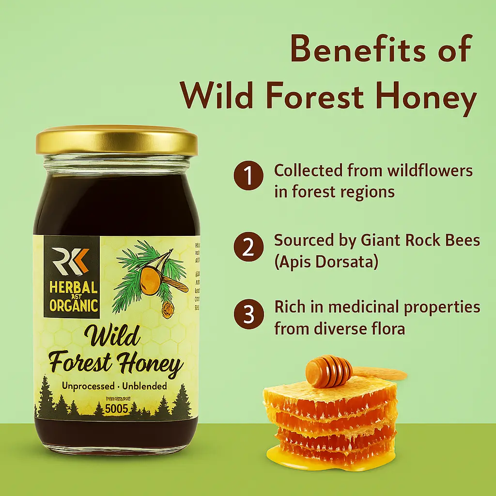 Wild bee dorsata honey, produced by the giant honey bee (Apis dorsata) from wild forest nectar, is highly prized for its unique taste and health benefits. Rich in antioxidants, vitamins, and minerals, it boosts immunity, supports heart health, and helps fight infections with its strong antibacterial and antifungal properties. This honey aids in digestion, enhances energy levels, and promotes wound healing when applied topically. It is also beneficial for soothing sore throats, reducing inflammation, and improving skin health. Consuming raw, unprocessed wild bee dorsata honey ensures you enjoy its maximum therapeutic benefits.